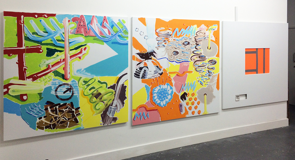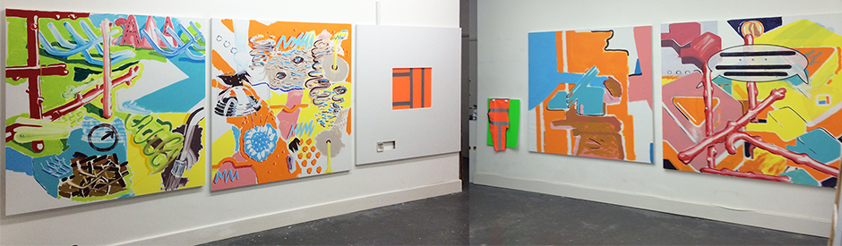 Shown centre:Achilles’ Song (2015). Oil on MDF, 154x100cm.