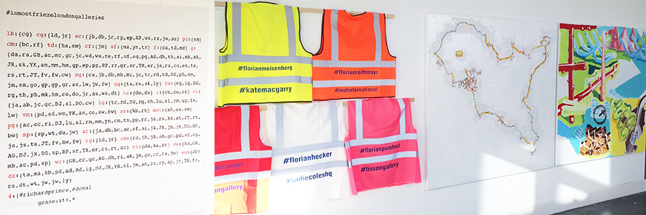 Michelle Molyneux, Julian Sharples and Enzo Ferrara. Art pieces that engage with the public in situ. The space is based in Portobello Road.